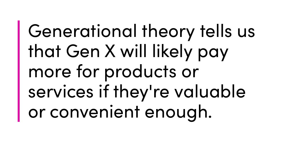 Gen Xers are uniquely positioned in society because the vast majority are simultaneously caring for aging parents while also raising their own children. Anyone in this type of dual caretaking role will automatically prioritize convenience and simplicity – they simply don’t have time for anything less.